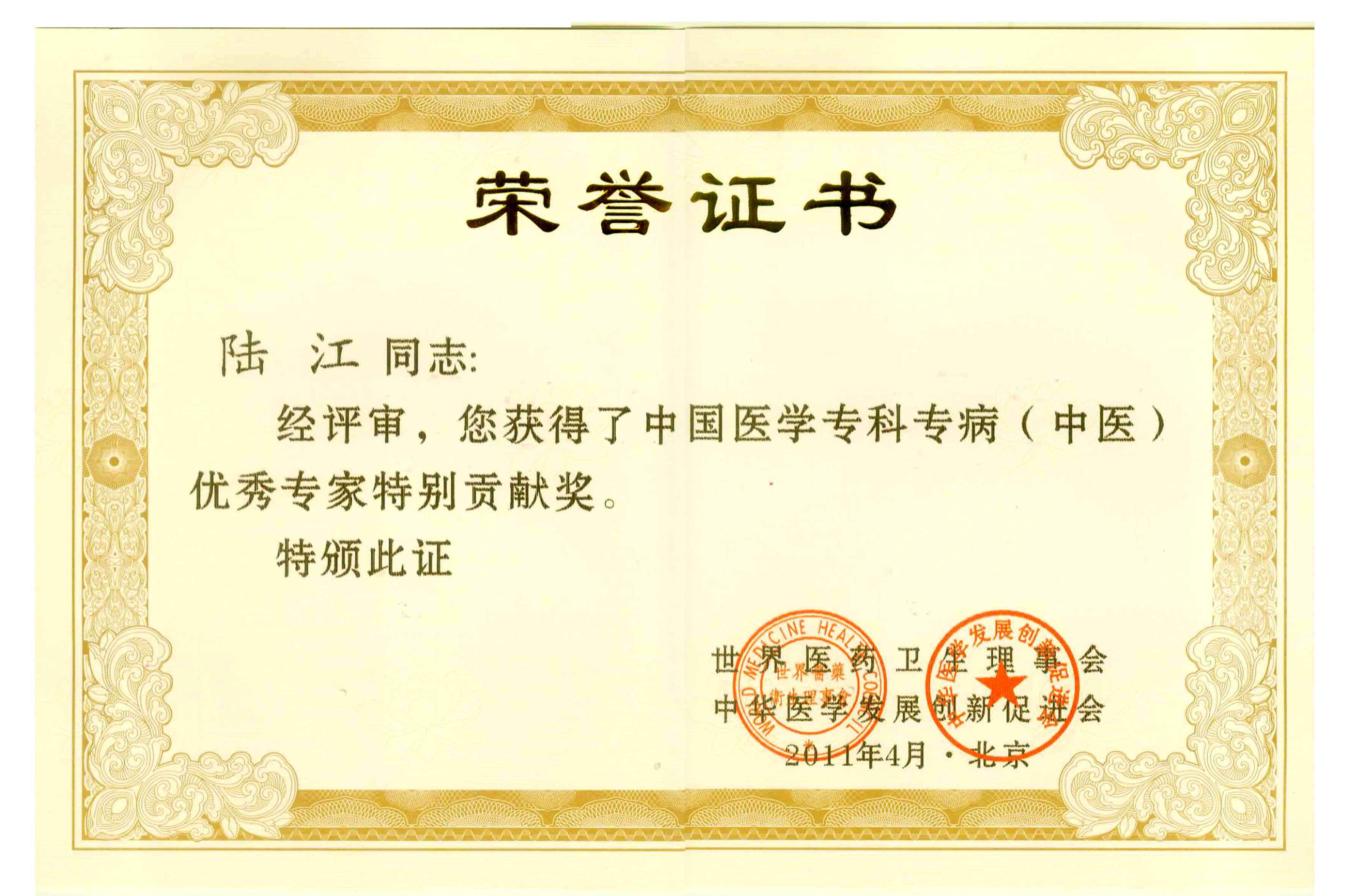 陸江獲得中國(guó)醫(yī)學(xué)專科專病優(yōu)秀專家恃別貢獻(xiàn)獎(jiǎng)